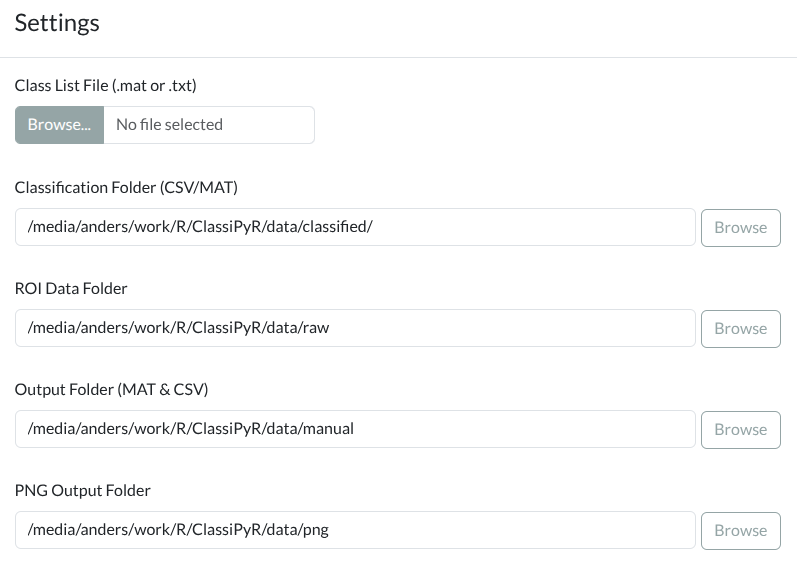 - In Settings, click Browse next to “Class List File”